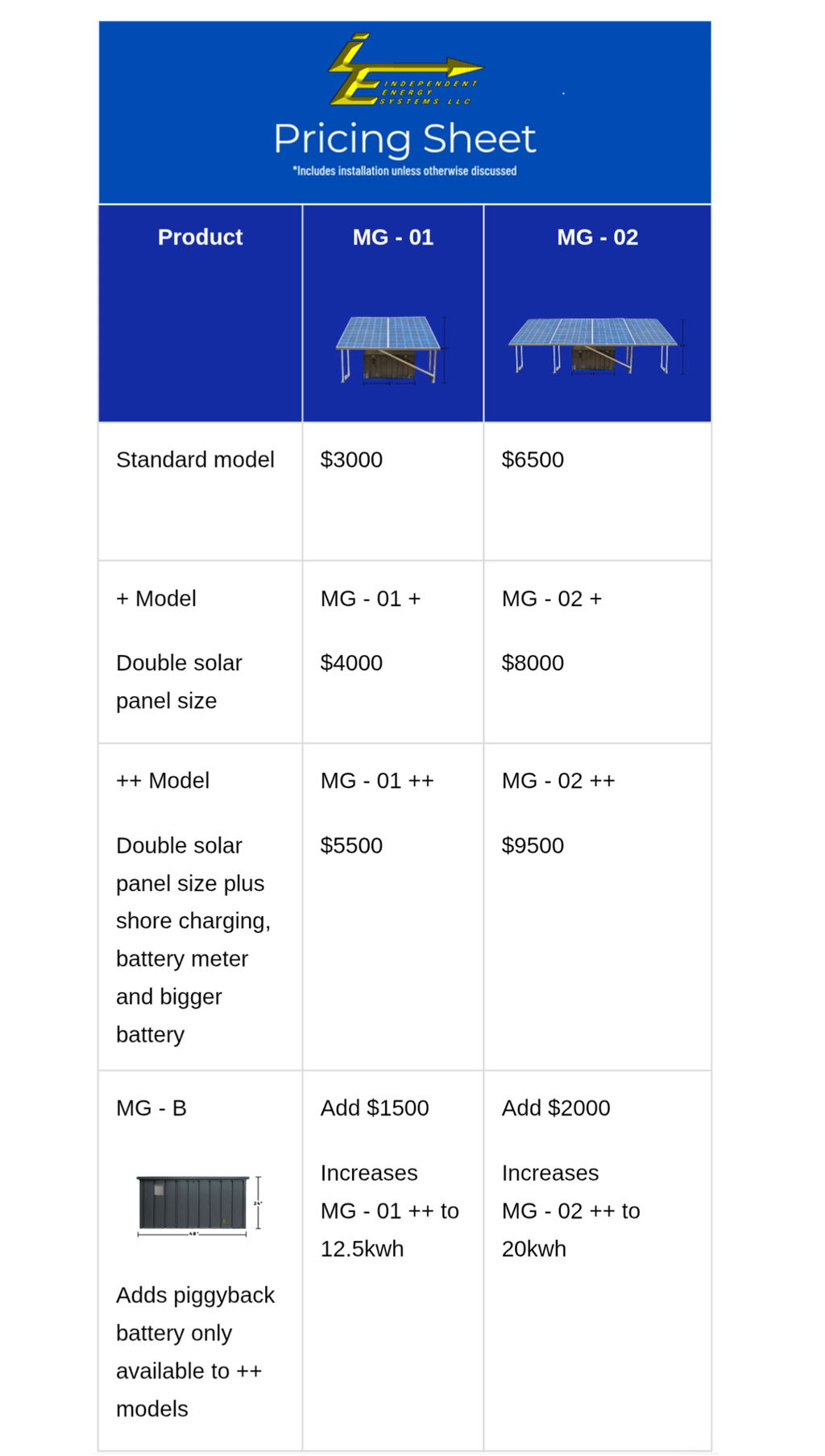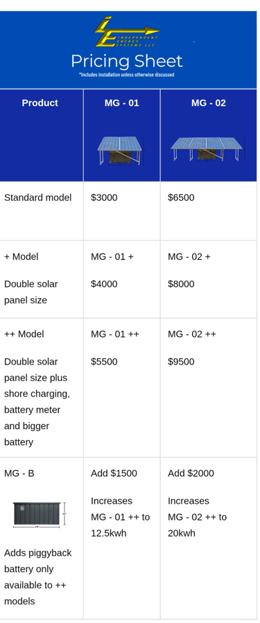 Our installation process is straightforward, first by providing the right system for your needs. Installation can be accomplished by you or we can consult and perform the installation for you. Due to everyone's unique situation and desires, for us to install your solar generator we must perform a site evaluation, and cost is not included in generator purchases.